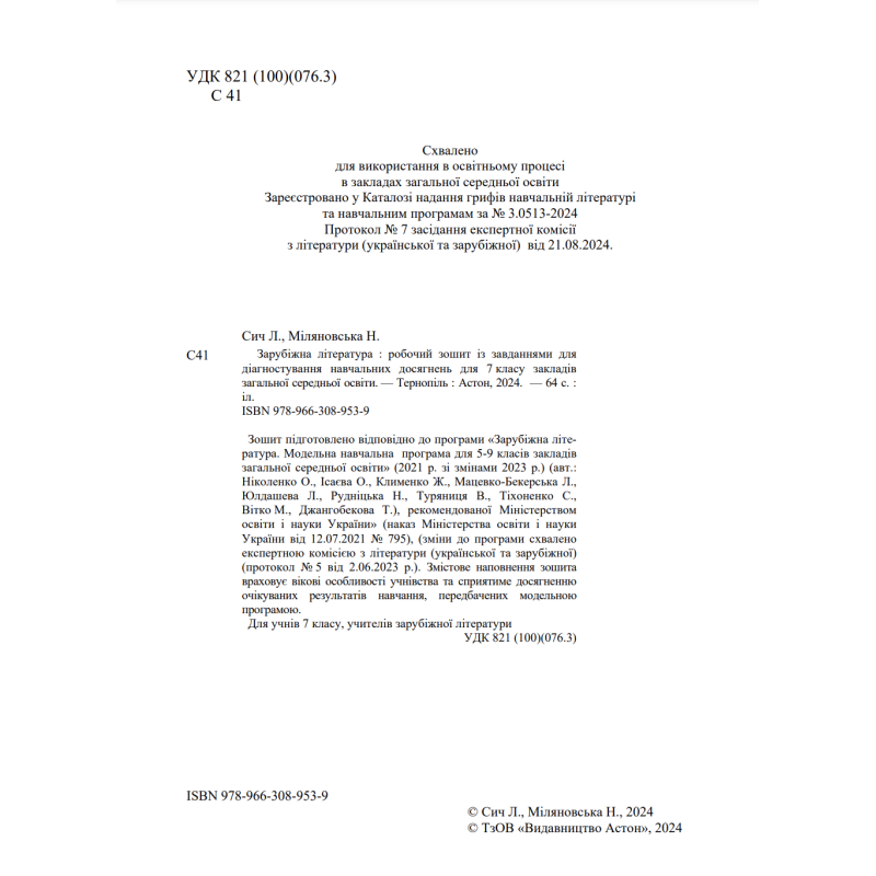 рекомендованной Министерством образования и науки Украины» (приказ Министерства образования и науки Украины от 12.07.2021 № 795), (изменения в программу одобрены экспертной комиссией по литературе (украинской и зарубежной) (протокол № 5 от 2.06.2023 г.) ).Содержательное наполнение тетради учитывает возрастные особенности ученичества и будет способствовать достижению ожидаемых результатов обучения, предусмотренных модельной программой.