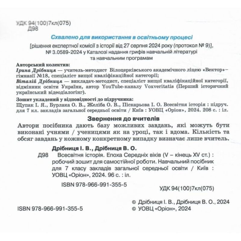 НУШ Тетрадь для самостоятельных и итоговых работ Орион Всемирная история 7 класс Дрибница (к учебнику Щупака) издательства Орион можно купить в интернет-магазине Книгован со скидкой или с бесплатной доставкой по Украине.