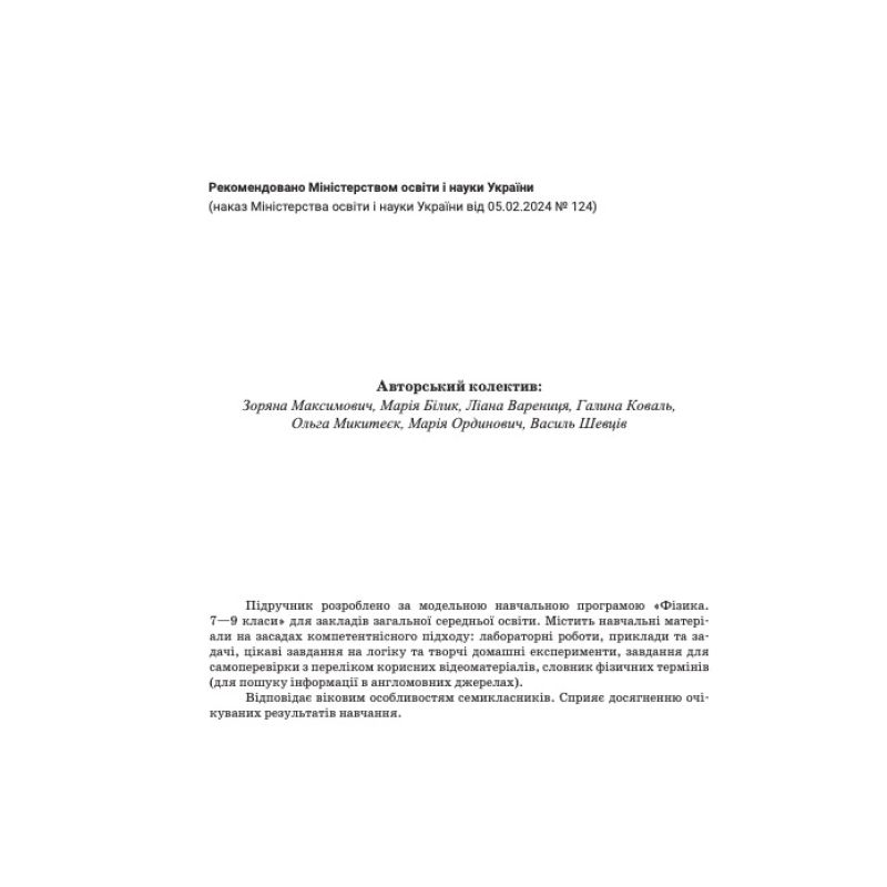 ВЦ «Академия» представляет вам новый учебник по физике для 7 класса. Авторы – Зоряна Максимович, Мария Билык, Лиана Вареница, Галина Коваль, Ольга Микитеек, Мария Ординович, Василий Шевцов.