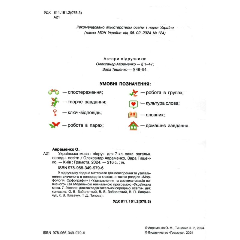 НУШ Учебник Грамота Украинский язык 7 класс Авраменко, Тищенко издательства Грамота можно купить в интернет-магазине Книгован со скидкой или с бесплатной доставкой по Украине.