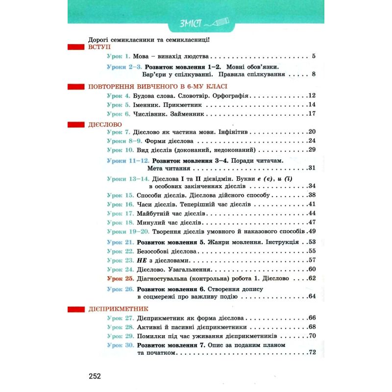 - Украинский язык. Учебник для 7 класса НУШСодержание учебника украинского языка для 7 класса (Онатий, Ткачук 2024 года из..