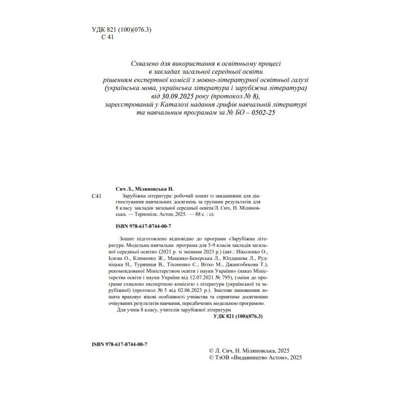 НУШ Рабочая тетрадь Астон Зарубежная литература 8 класс с заданиями для диагностики учебных достижений Сыч, Миляновская 2025 год издательства Астон можно купить в интернет-магазине Книгован со скидкой или с бесплатной доставкой по Украине.
