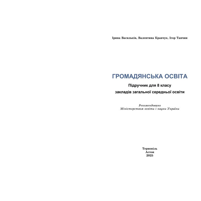 Гражданское образование. Учебник для 8 класса ЗЗСО НУШ (Васильков и др.). 2025 год