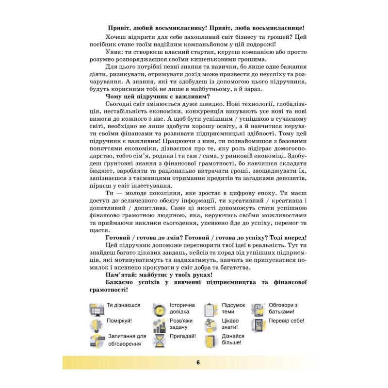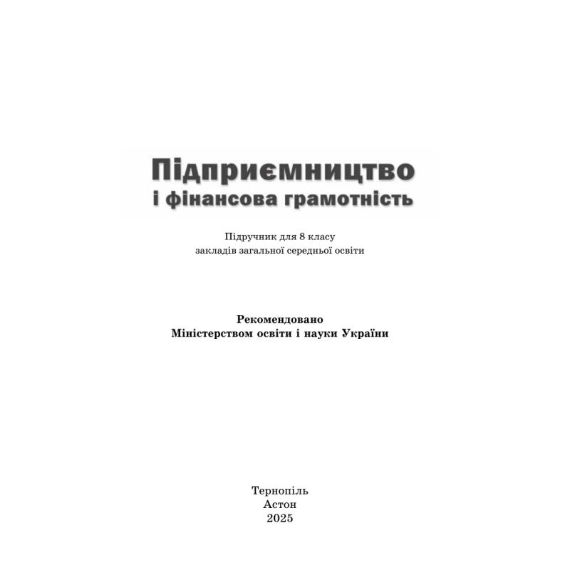 «Предпринимательство и финансовая грамотность» учебник для 8 класса заведений общего среднего образования (авт. Гургула Т.В., Буяк Р.Р., Куждеба Б.Ю., Сливка Е.М., Сухинская В.А.)