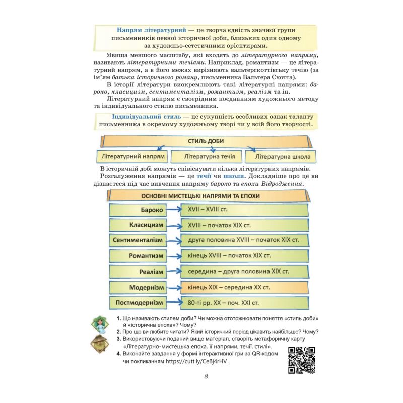 Учебник украинская литература Олеси Калинич, Светланы Дячок (под научной редакцией профессора Юрия Ковбасенко) для 8 класса создана по модельной программе «Украинская литература. 7-9 классы» для учреждений общего среднего образования (авторы: Яценко Т. А., Пахаренко В. И., Слижук А. А., Тригуб И. А.).
