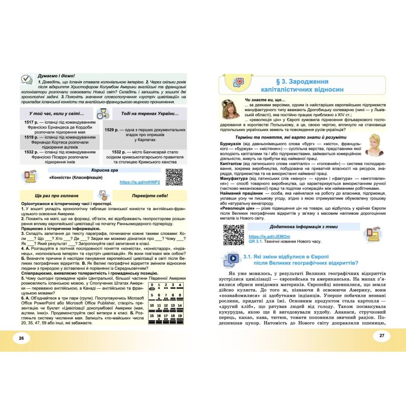 Учебник для 8 класса по всемирной истории автора Васильков предлагает учебный материал, соответствующий действующей программе, а его особенностью является сравнение событий и процессов, происходивших на территории Хукской степи, стран мира и Украины в течение раннего Нового времени. Благодаря текстам, задачам, таблицам и иллюстрациям можно синхронно изучать разделы всемирной и украинской истории, что упрощает рекомендованную программу обучения. Абзацы содержат познавательные и понятные рассказы, цветные схемы, карты и интересные вопросы и задания в рубрике "Размышляем и действуем!". Есть также удобные шпаргалки, которые будут полезны, а также возможность создавать их самостоятельно.