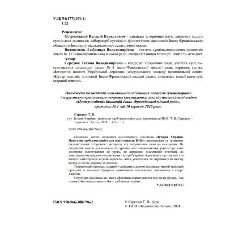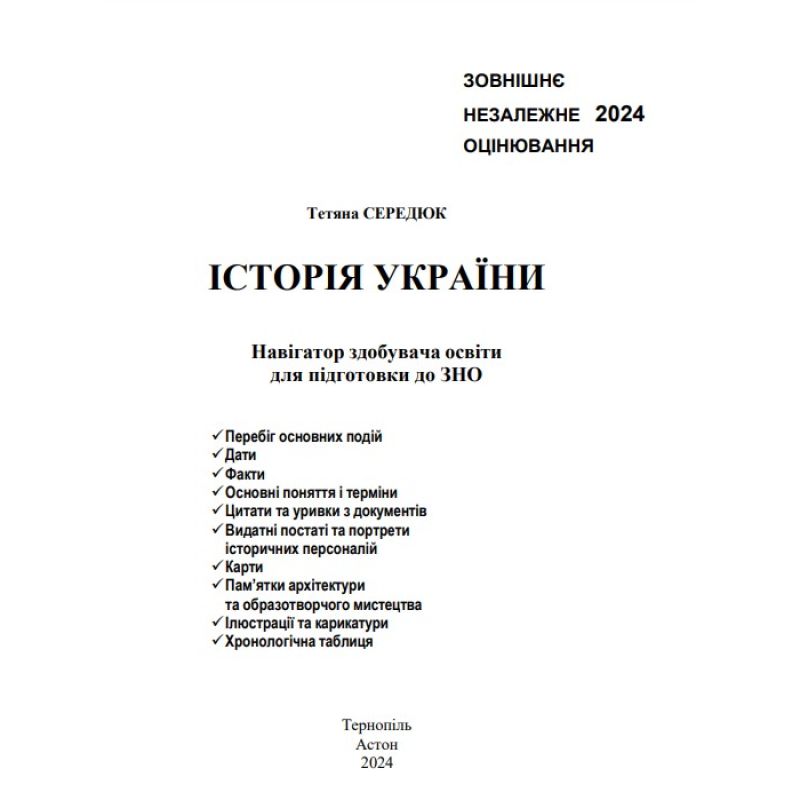 История Украины. Навигатор соискателя образования для подготовки к ЗНО. 2024 Середюк Т.