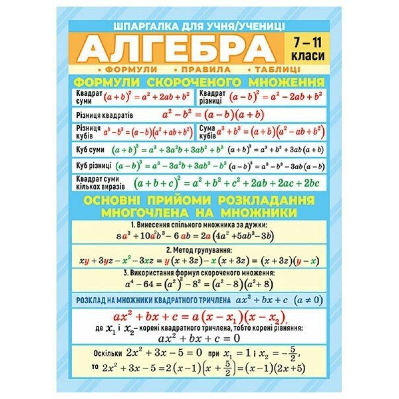Рекомендована для многократного использования. Идеально подходит для учеников 7–11 классов, родителей, которые стремятся помочь детям с подготовкой, и учителей в качестве наглядного материала.