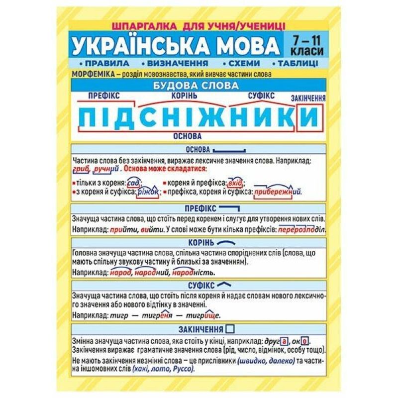 1. Новинка от Ранок. Наглядные пособия шпаргалка по украинскому языку для учащихся 7-11 классов (с правилами, определениями, схемами, таблицами)