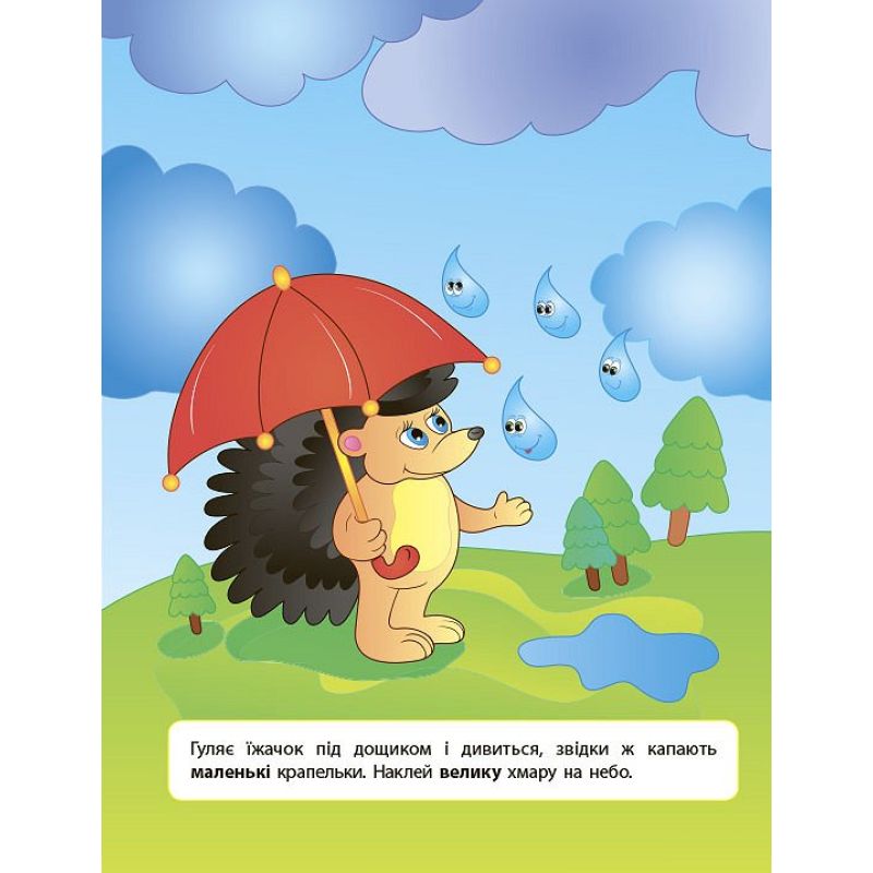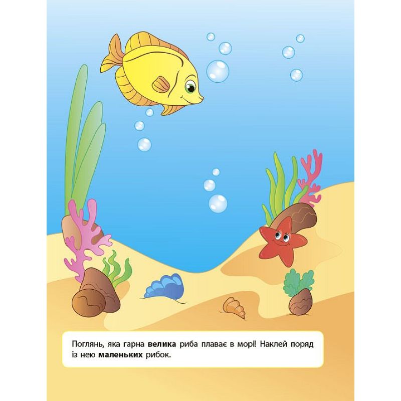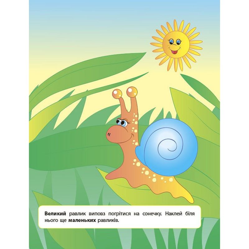Видання "Наліпки для розвитку дитини. Великий — маленький" призначене для спільної роботи дітей у віці від одного року з батьками.