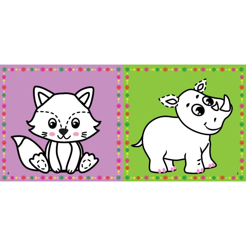 Видання містять великі чорно-білі картинки, які потрібно домалювати по пунктиру, розфарбувати й доповнити яскравими наліпками. Контрастні фони малюнків із певними акцентними кольорами допоможуть малюками навчитися краще фокусувати погляд, а щоб маленькі пальчики почувалися впевненіше, усі зображення виконані товстим контуром. Робота із серією потренує графомоторику, розвине зорове сприйняття та творчі здібності дитини, а також допоможе розпочати знайомство з прописами.