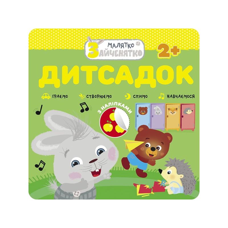 «Малятко-зайченятко. Дитсадок» — це серія книжок із наліпками для розвитку основних навичок малюків віком від двох років.