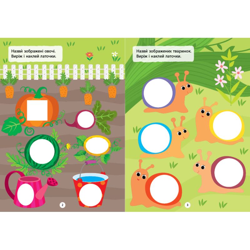 У ній зібрані різноманітні цікаві малюнки, які потрібно доповнити простими й зрозумілими наліпками-деталями. Усі наліпки дитина має вирізати по контуру й наклеїти самостійно. Книжки спрямовані на розвиток дрібної моторики та навички роботи з ножицями, а також допоможуть потренувати пам’ять, логічне й асоціативне мислення, виховати акуратність і посидючість.