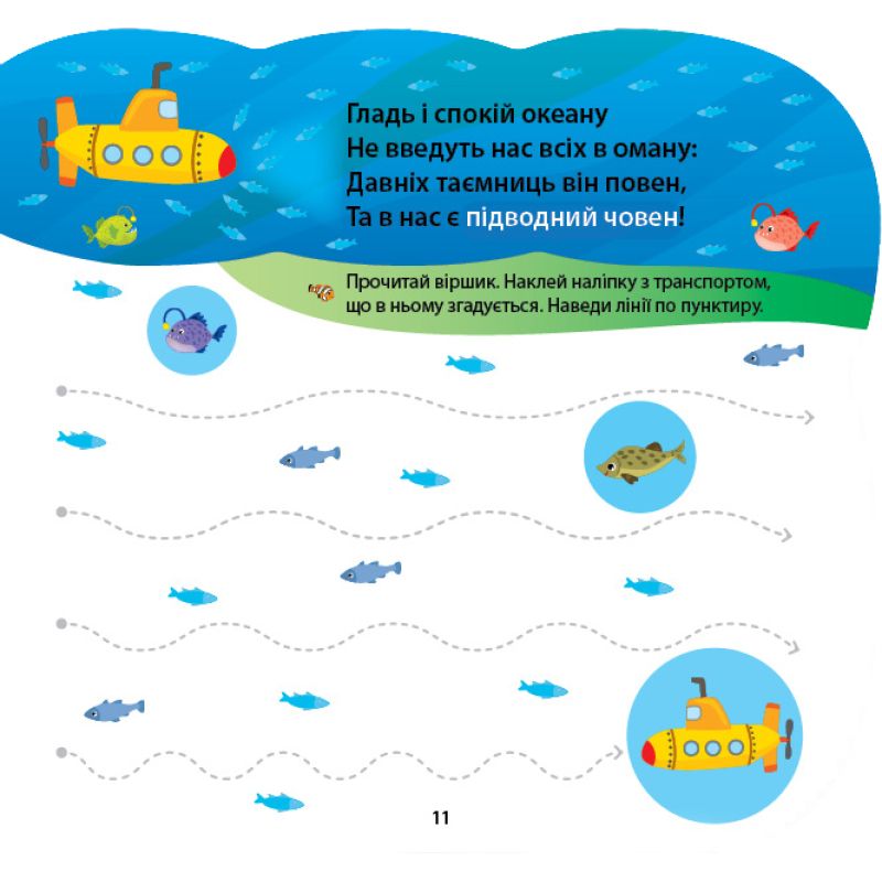 Книжка «Транспорт і техніка» організує цікаве й пізнавальне дозвілля для малюків, адже містить тематичні загадки та віршики, які переплетені з простими тренувальними прописами. Розгадавши загадки про транспорт і техніку, дитині потрібно буде наклеїти відгадки, навести їх по пунктиру й розфарбувати, оздобивши кожен малюнок наліпками. Цікаві віршики розширять словниковий запас малечі, потренують пам’ять та увагу, бо спонукатимуть наклеїти певні предмети й домалювати малюнки. Захопливе ігрове дозвілля виховуватиме посидючість, забезпечить гарний настрій та розвиток дрібної моторики пальців рук.