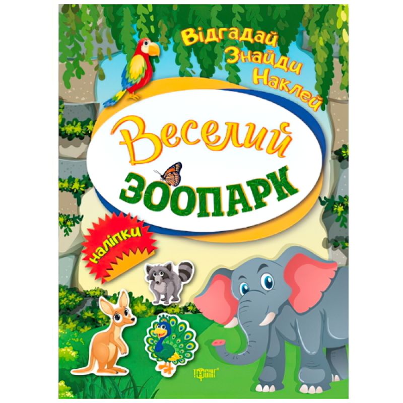 Відгадай. Знайди. Наклей. Веселий зоопарк - наклiпки для різнобічного розвитку дитини.