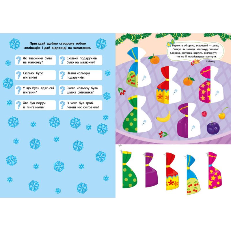 Серія «Зимові аплікації» створена для розвитку творчих здібностей і дрібної моторики маленьких непосидючок. У кожній книжці на малюків чекають святкові зимові ілюстрації, зображення на яких потрібно доклеїти, а ще – віршики й загадки, цікаві питання і наліпки. Книжки серії розвинуть логічне мислення, потренують пам’ять та увагу, виховають посидючість, організують цікаве дозвілля і сформують бажання створювати подарунки рідним і близьким своїми руками.