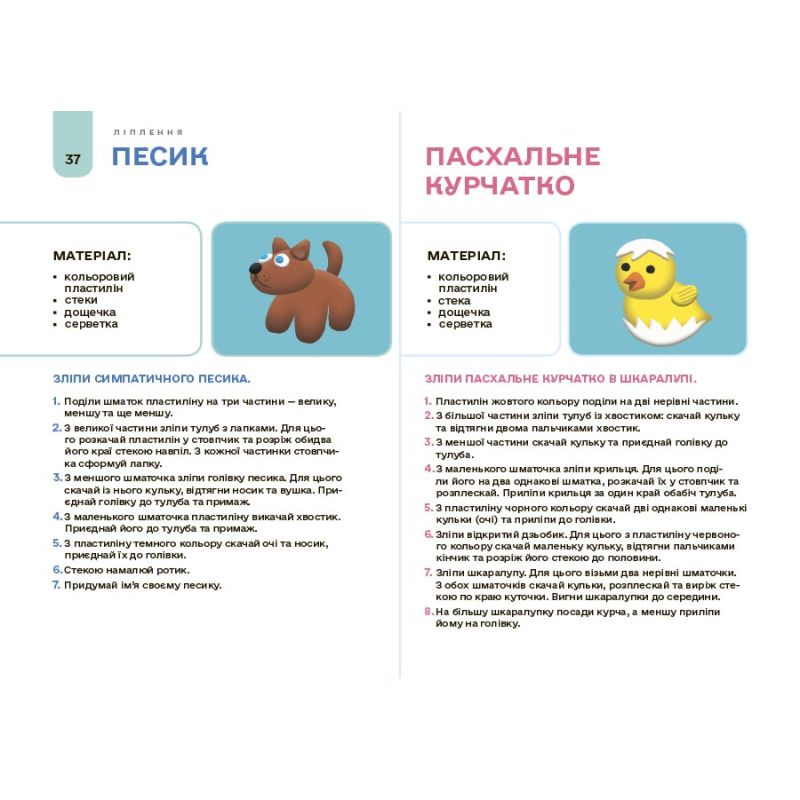 Для ліплення використовують пластилін, глину, солоне тісто та природні матеріали. Також передбачено теми з пластилінографії та ліплення на фоні. Рекомендовано для використання на заняттях у дитячих дошкільних закладах, а також для роботи дорослих із дітьми вдома.