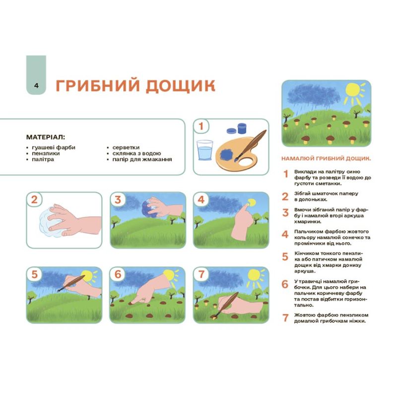 Передбачено малювання традиційними та нетрадиційними техніками (штампами, патичком, відбитками природного матеріалу та іншими).
