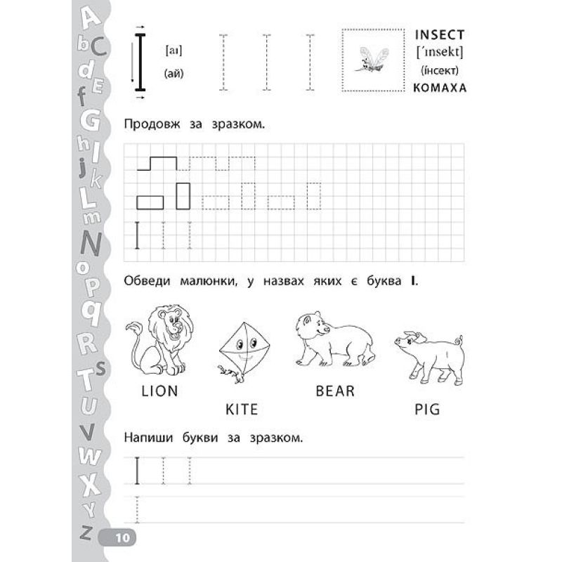 Зошит спрямований на розвиток дрібної моторики та навичок письма, а також вивчення англійського алфавіту. Працюючи із цим виданням, дитина зможе не тільки познайомитися з літерами англійського алфавіту, навчитися їх писати та поповнити словниковий запас, але й розважитися: виконати захопливі завдання за допомогою наліпок. Прописи призначені для спільної роботи дорослих з дітьми дошкільного віку.