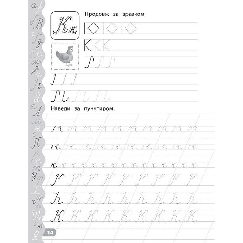 2. Каліграфія для дошкільнят — Учимо та пишемо букви. Прописи із завданнями та наліпками