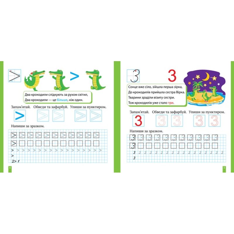 Запропоновані прописи допоможуть дитині опанувати лічбу й оволодіти навичками правильного написання цифр і знаків. Вправи з каліграфії органічно поєднані із завданнями з математики. А робота з наліпками також сприяє розвитку дрібної моторики.