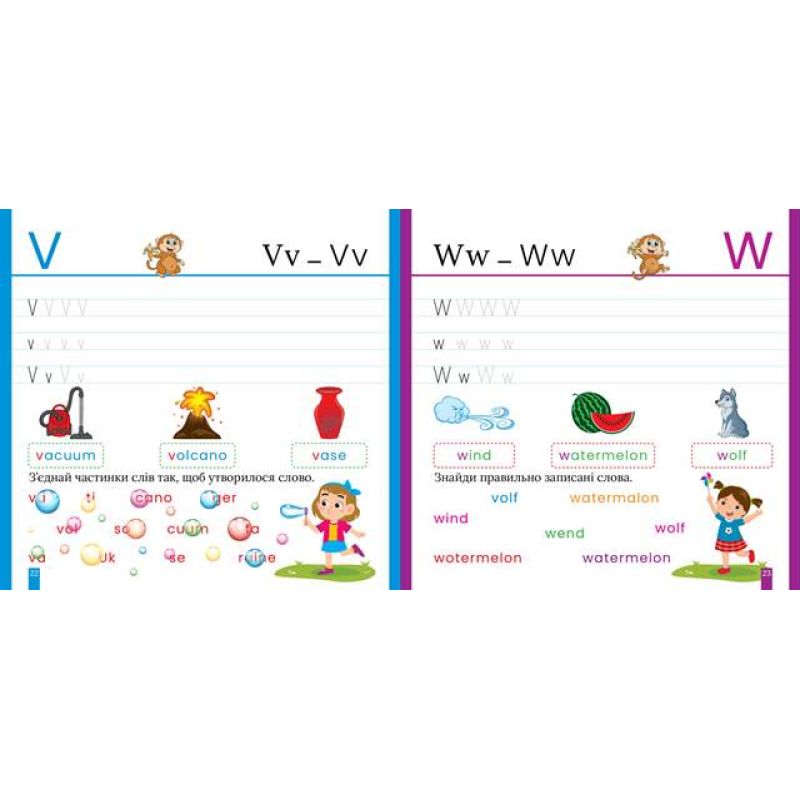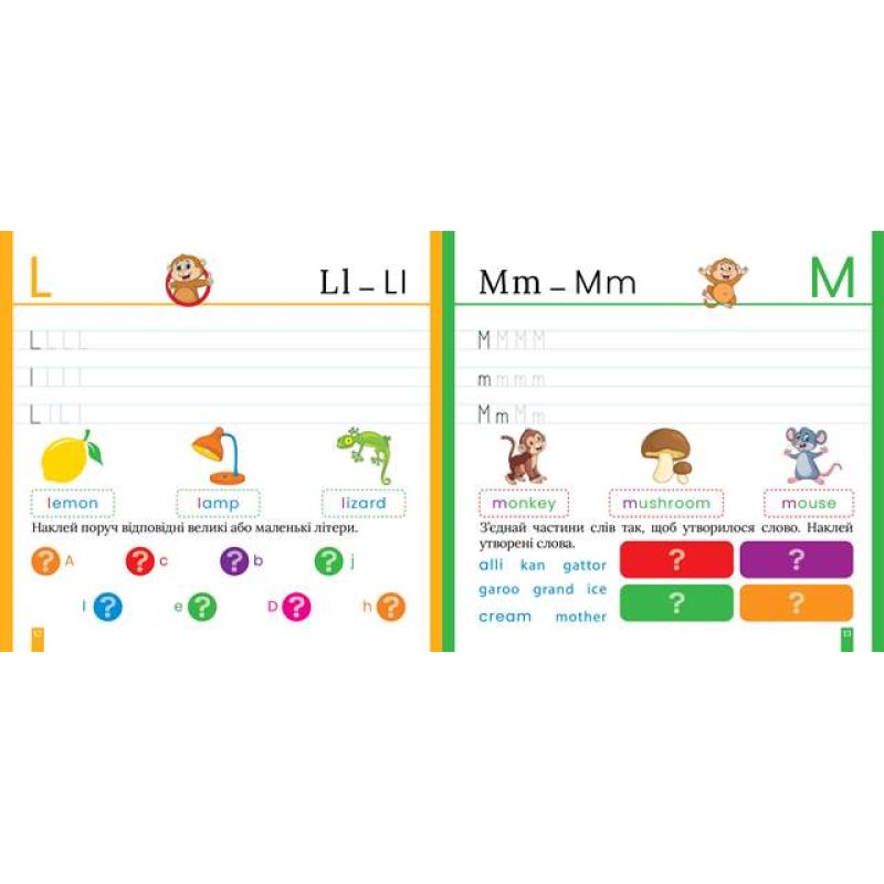 Прописи допоможуть виробити та потренувати навичку написання літер англійського алфавіту. Цьому посприяють завдання на наведення літер і слів спочатку за пунктиром, а потім і самостійне виконання. Дитина поповнить свій словниковий запас і навчиться розрізняти складні випадки вживання слів. Ігрові завдання з наліпками зроблять навчання легким і захоплюючим.