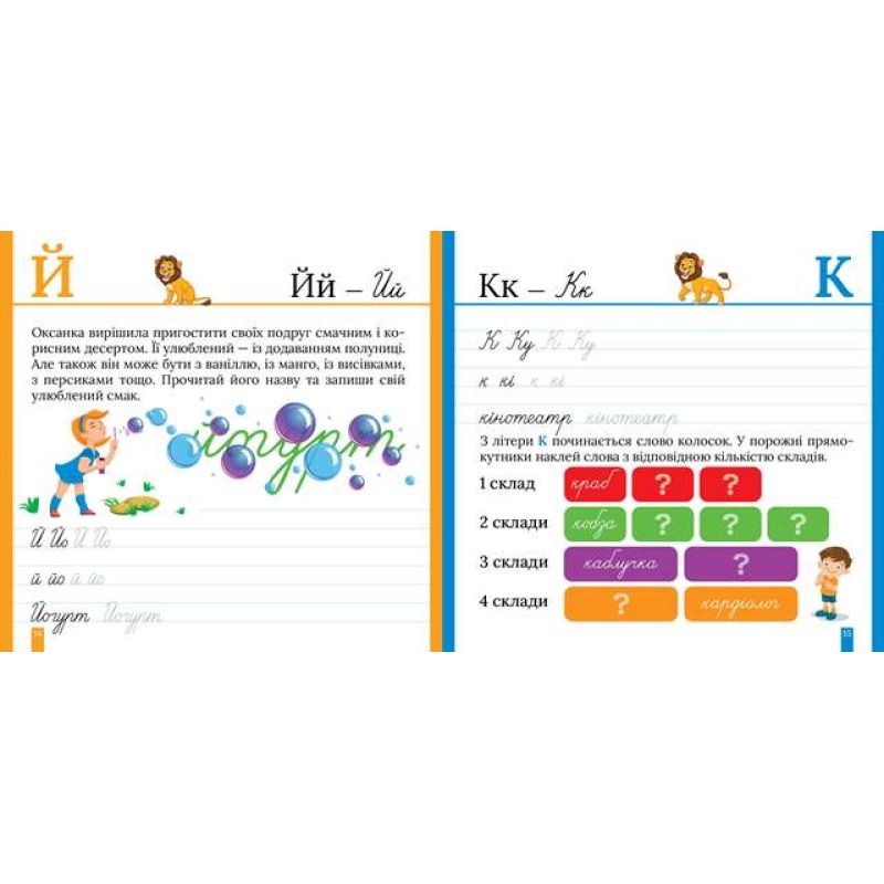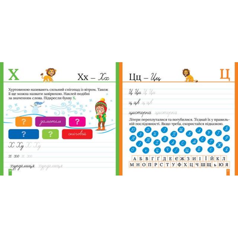 Прописи допоможуть виробити та потренувати навичку письма в широку лінію. Цьому посприяють завдання на наведення літер і слів спочатку за пунктиром, а потім і самостійне виконання. Цікаві вправи допоможуть формуванню орфографічних навичок і мовних компетенцій. Дитина поповнить свій словниковий запас і навчиться розрізняти складні випадки вживання слів. Ігрові завдання з наліпками зроблять навчання легким і захоплюючим.