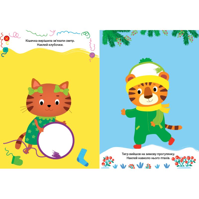 Серія «Наліпки-розмальовки» перетворить знайомство вашого малюка з навколишнім світом на захопливу гру! У ній він знайде милих кумедних персонажів, яких треба домалювати за підказками — товстими кольоровими контурами. Яскраві наліпки допоможуть доповнити готові малюнки. Дозвілля із цією серією покращить дрібну моторику, сприятиме удосконаленню координації рухів і просторового мислення, а також розвитку уяви та творчих здібностей.
