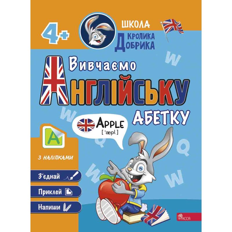 Герой книжки - кролик Добрик - запрошує малюків до своєї веселої школи у світ англійської абетки. Із таким цікавим другом дитина вивчить назви літер англійської абетки, навчиться їх писати.