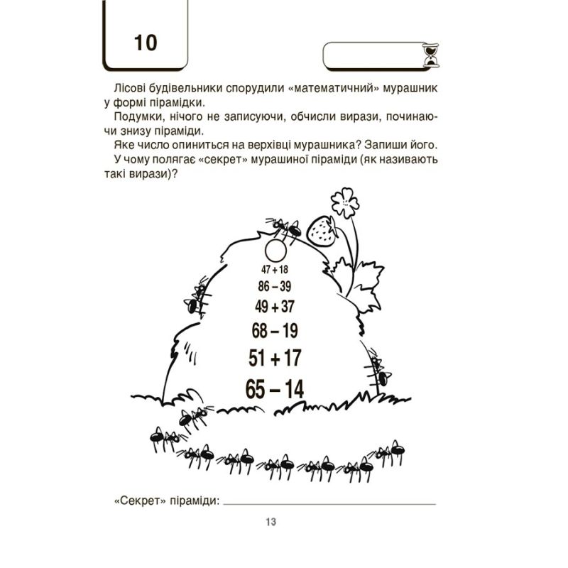 На сторінках цієї книжки ви побачите 70 цікавих завдань, під час виконання яких майже не потрібно робити жодних записів. Міркувати та обчислювати слід подумки, не занотовуючи проміжних результатів, а запам’ятовуючи їх.