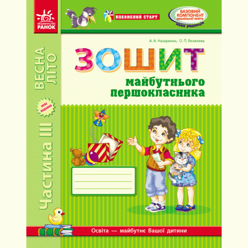 Навчальний посібник «Впевнений старт: Зошит майбутнього першокласника (частина 3)» направлено на підготовку дитини до шкільного життя. Робота з посібником може здійснюватися в сім'ї, в групах дошкільних навчальних закладів, в підготовчих групах при школах, в центрах розвитку дитини. Завдання відповідають запитам практиків і враховують кращі теоретичні та методичні рекомендації, сприяють особистісному розвитку дітей, дають можливість зробити заняття цікавими і змістовними. Робота з посібником забезпечить високий рівень обов'язкової дошкільної освіти та однакові стартові можливості всім майбутнім першокласникам.