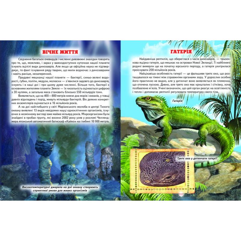 Прадавні мешканці морів і океанів, як з’явилися перші тварини суходолу, а також рептилії, що започаткували епоху динозаврів. Ви також дізнаєтесь багато цікавого про самих динозаврів, про морських та повітряних рептилій, що жили в ті часи, а також про нащадків і сучасників динозаврів, що живуть нині на Землі.