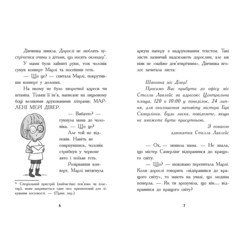Найкраща подруга Марлі переїхала до Чикаго. Дівчинка за нею дуже сумує, пише листи подрузі та чекає на нову зустріч. Однак замість відповіді отримує звістку про зустріч із адвокатом. На зустріч приходять ще й однокласники Марлі — Ісла та Сай. Схоже, містер Саммерлінг, старенький сусід, заповів їм трьом скарб, який діти мають знайти за залишеними підказками.У душі містер Саммерлінг був мисливцем за скарбами. Може, він лишив дітям гроші? Тоді б Марлі могла купити квиток на літак до Чикаго. Але пригода дарує дівчинці дещо значно більше, ніж гроші, — нових друзів.