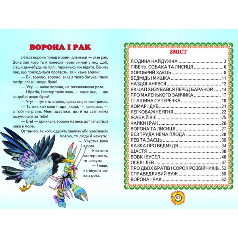 Ця книга - золота криничка народних казок, до якої ввійшли такі відомі казки як Легковажне ягня, Осел і лев, Пташина суперечка, Хоробрий заєць та ін.
