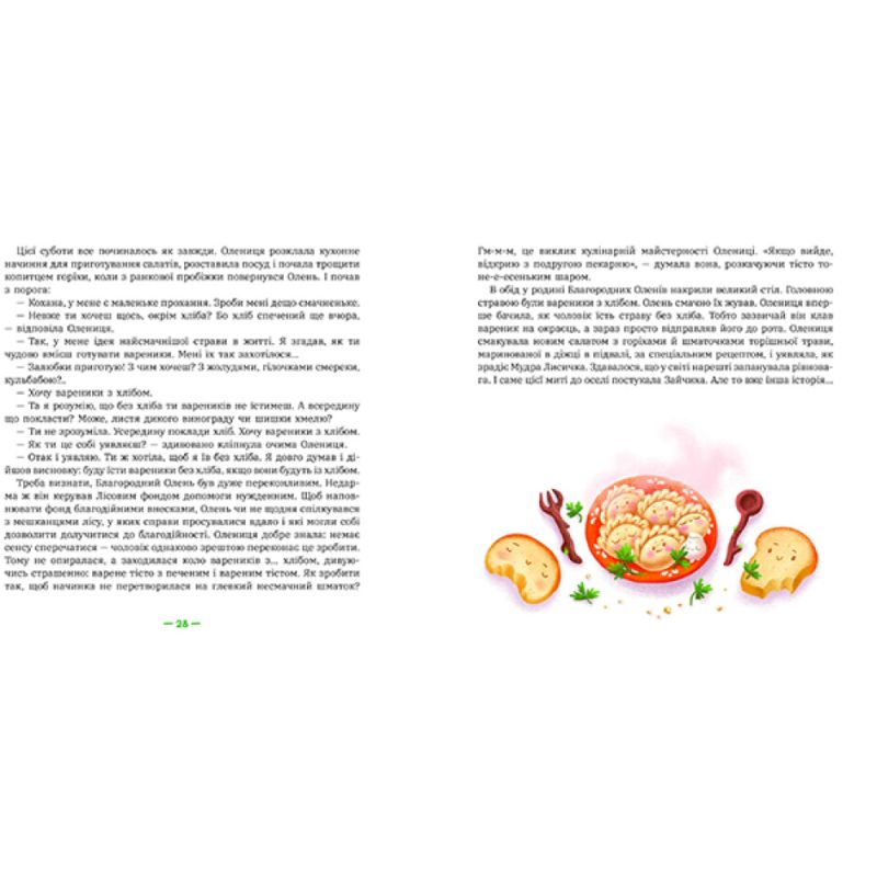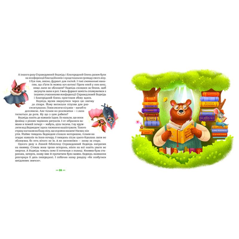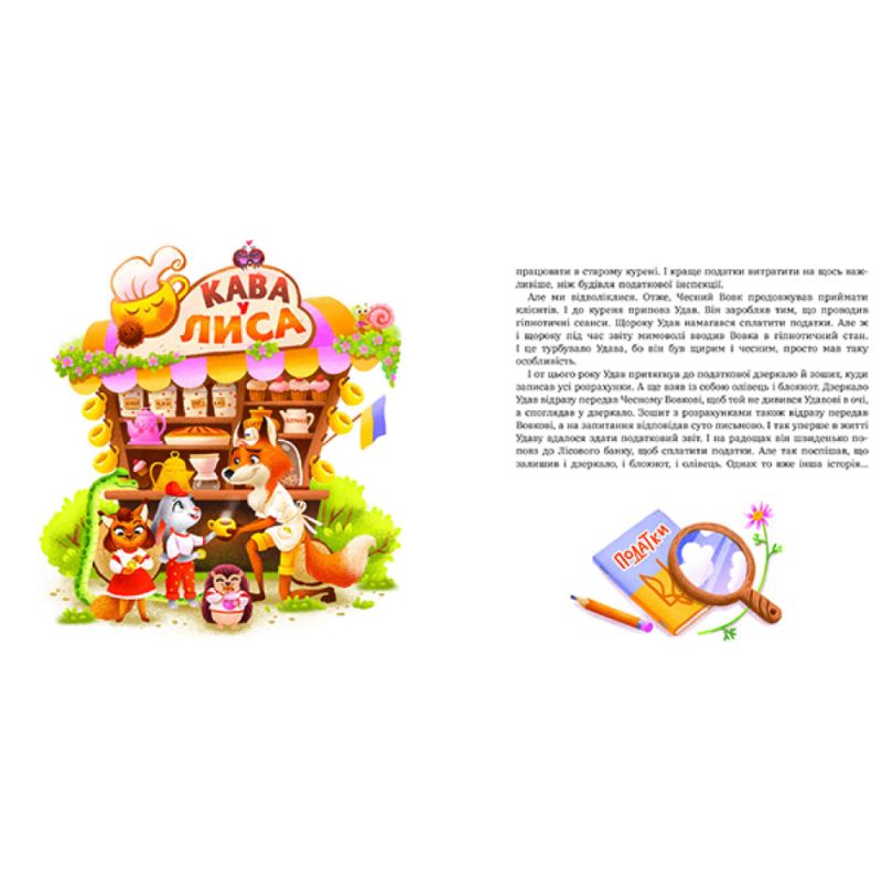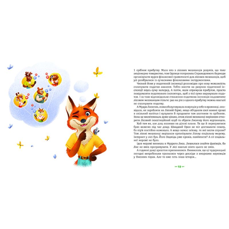 Буває, що герої книжки стають персонажами настільної гри, — це поширена історія. Але тут все навпаки: герої завітали на сторінки книжки з настільної гри. Спочатку з’явилась гра «Лісові Комерсанти», а потім народилась історія про лісових героїв. Ці казки особливі. Вони розповідають про життя мешканців Чарівного лісу! Про всілякі пригоди — веселі, дивні й нісенітні. Про лісові гроші (так-так! тварини користуються грошима!). Про цікаві проєкти й сміливі бізнес-ідеї… І про безглузді ідеї теж, як без них! Про фінансове та підприємницьке життя, про лісовий банк і податкову інспекцію, про лісову пошту та благодійний фонд і про те, як тварини йдуть, повзуть чи летять на роботу. Про усілякі проблеми поза роботою, кумедні й серйозні. І про те, як тварини їх розв’язують — майже як люди. Але за єдиним винятком — їм завжди вдається порозумітися! Навіть в найскладніших ситуаціях. І цього доречно у них повчитися.