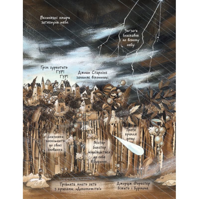 Королівство Височінь розкинулося на верхівці лісу. І щоб спускатися на землю, його мешканці користуються драбинами. Але одного дня розпочалася сильна буря, що не вщухала 39 днів!