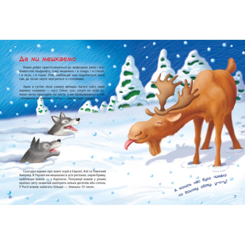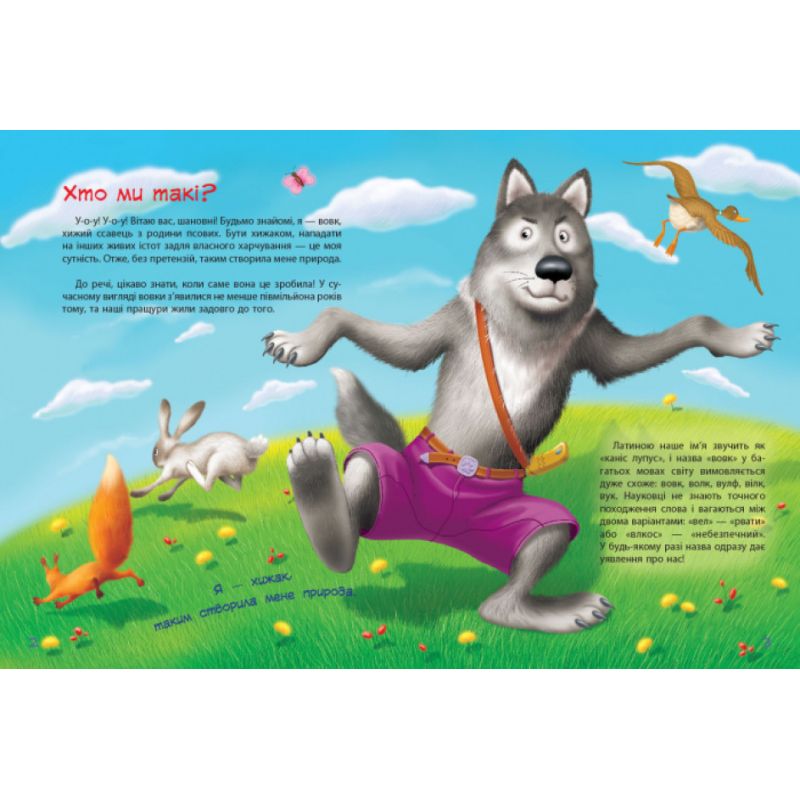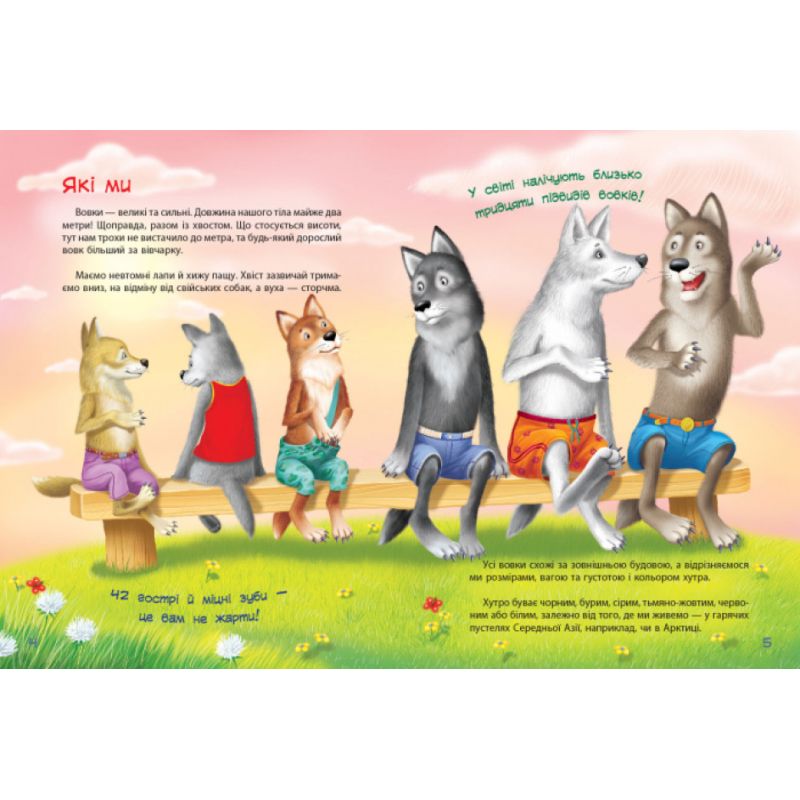 Вовки - одні з найрозумніших хижаків у світі! Книга познайомить юного читача з цими дивовижними тваринами. Дитина дізнається, чим вовки відрізняються від собак, скільки видів
