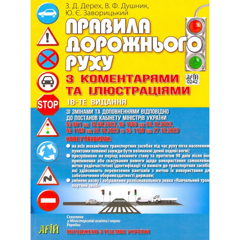 У книзі подано роз’яснення вимог Правил дорожнього руху, що були введені в дію з 1 січня 2002 р. постановою Кабінету Міністрів України № 1306 від 10 жовтня 2001 р. з усіма змінами (постанови Кабінету Міністрів України № 16 від 06.01.2005, № 538 від 30.06.2005, № 263 від 21.02.2007, № 879 від 27.06.2007, № 634 від 09.07.2008, № 876 від 01.10.2008, №№ 76, 124 від 11.02.2009, № 395 від 22.04.2009, № 934 від 03.09.2009, № 435 від 20.04.2011, № 620 від 09.06.2011, № 1029 від 26.09.2011, № 668 від 18.07.2012, № 111 від 11.02.2013, № 136 від 06.03.2013, № 162 від 04.06.2014, № 490 від 17.09.2014, № 869 від 21.10.2015, № 641 від 14.09.2016, № 790 від 09.11.2016, № 161 від 22.03.2017, № 660 від 30.08.2017, № 883 від 10.11.2017, № 860 від 15.11.2017, № 553 від 11.07.2018, № 46 від 23.01.2019, № 258 від 27.03.2019, № 196 від 26.02.2020, № 370 від 13.05.2020, № 1105 від 11.11.2020, № 1192 від 02.12.2020, № 152 від 24.02.2021, № 721 від 14.07.2021, № 1091 від 29.09.2021, № 105 від 09.02.2022, № 601 від 10.05.2022, № 944 від 19.08.2022, № 1217 від 28.10.2022, № 1376 від 09.12.2022, № 457 від 09.05.2023, № 861 від 15.08.2023, № 1063 від 03.10.2023, № 1105 від 20.10.2023, № 1128 від 27.10.2023, №1242 від 24.11.2023 та № 142 від 09.02.2024) та з урахуванням Конвенції про дорожній рух, чинного Закону України «Про дорожній рух», Державних стандартів та інших нормативних актів.