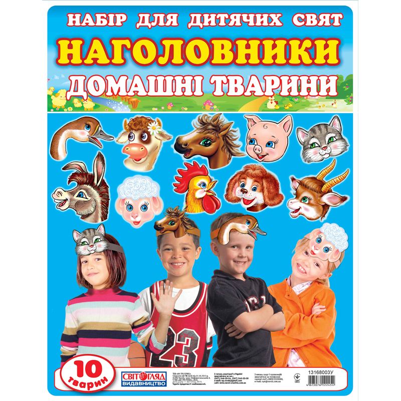 Набір "Наголовники для дитячих свят. Домашні тварини" виконаний з ламінованого картону, є кріплення навколо голови. У наборі 10 наголовникiв для дітей. Формат 30х21 см.