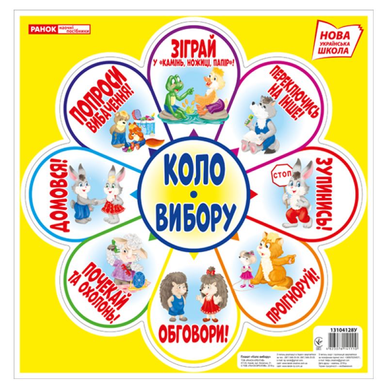 «Коло вибору» - це методика, яку пропонує Нова українська школа, як спосіб подолання конфліктів серед учнів. Перед учнями постає вибір, яку стратегію обрати у вирішенні певної конфліктної ситуації. Методика пропонує декілька варіантів виходу із ситуації, наприклад: