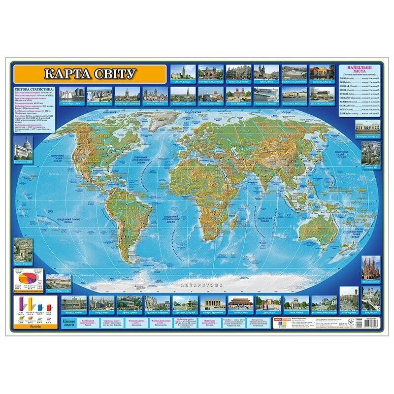 Плакат «Карта світу» – ідеальне доповнення до вашої кімнати чи навчального приміщення! Він виготовлений на целюлозному картоні щільністю 215 мг, що робить його стійким та довговічним.