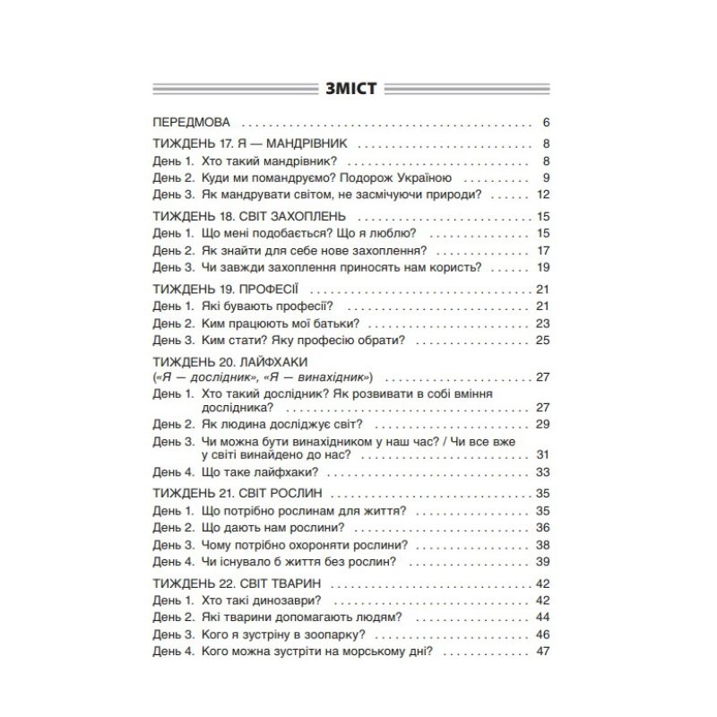 Щоденні вітання, цікаве подання потижневого матеріалу, групова робота, ігри та завдання розвивального характеру, диференційований підхід до кожного учня допоможуть учителеві згуртувати дитячий колектив, сприятимуть розвитку навичок спілкування, логічного мислення молодших школярів, їхньої творчої уяви, самостійності, формуванню всебічно розвиненої особистості громадянина і патріота, здатного до інновацій.