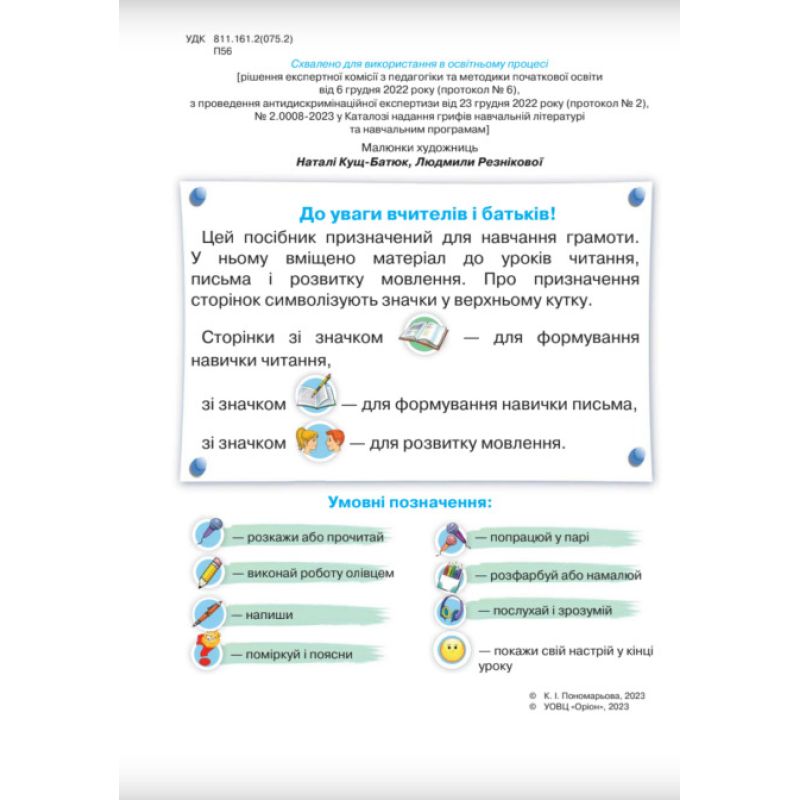 Українська мова. Буквар Частина 5: навчальний посібник для 1 класу ЗЗСО. Пономарьова К.І. (2023)