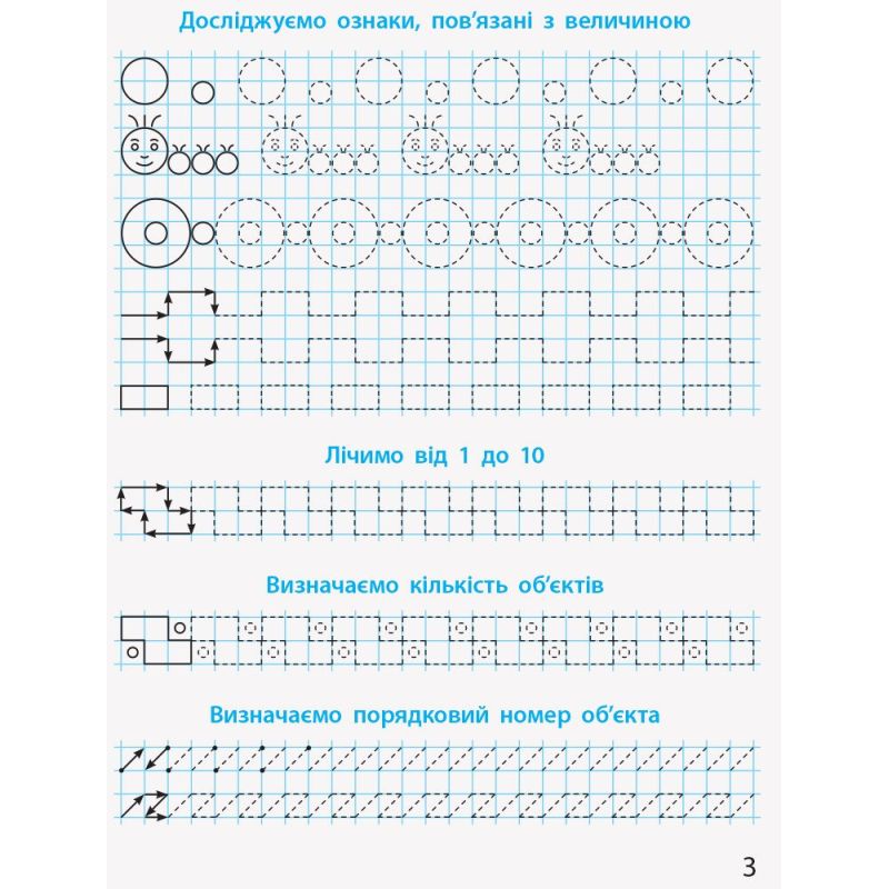 Система завдань, поданих у посібнику, спрямована на формування графічних навичок першокласників, навичок написання цифр, у тому числі в учнів, які пишуть лівою рукою, на розвиток дрібної моторики, просторової уяви та орієнтування на площині зошита. Усі матеріали подані з урахуванням вікових особливостей учнів і можуть бути використані як для фронтальної й самостійної роботи на уроці, так і для індивідуальних занять.