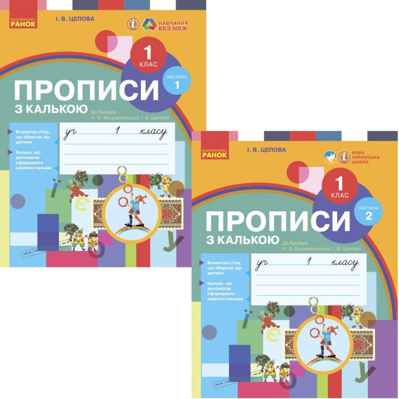 - Прописи з калькою. 1 клас до букваря Воскресенської, Цепової. НУШ-2. КОМПЛЕКТ у 2-х частинахНова українська школа.Пропис..