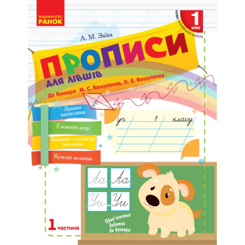 Посiбник «НУШ. Прописи для лівшів 1 клас (до букваря Вашуленка) 1 частина» призначений для учнiв 1 класу.