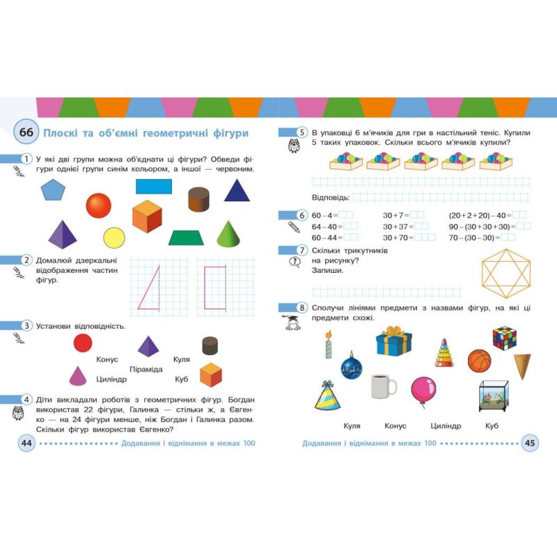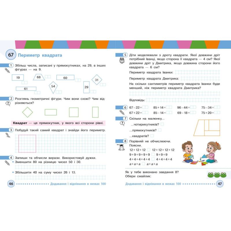 Сучасне художнє оформлення навчального посібника відповідає віковій категорії другокласників/другокласниць, зацікавлює, привертає увагу, доповнює математичну інформацію.
