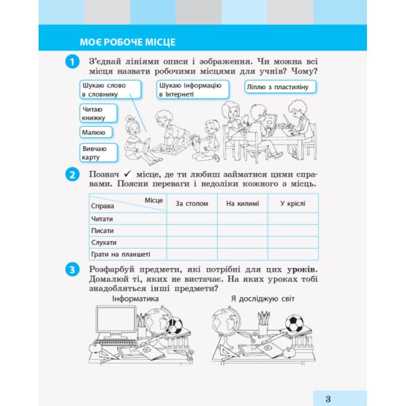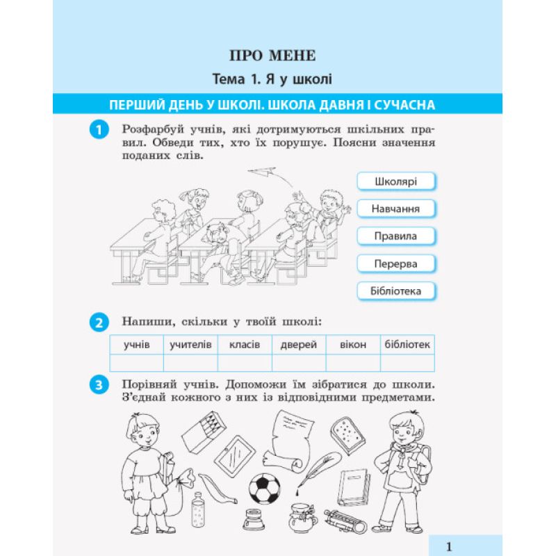Посібник складається з двох частин. Перша частина містить матеріали для першого семестру навчання: інтегровані завдання, спрямовані на розвиток системного, критичного і креативного мислення; таблиці, схеми, діаграми; зразки виконання практичних робіт; опис дослідів. Матеріал подано в цікавій і доступній формі з урахуванням психологічних особливостей другокласників.