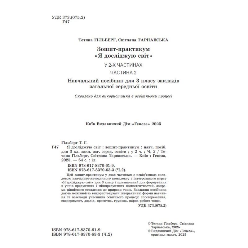 НУШ-2 Зошит-практикум Генеза Я досліджую світ 3 клас Частина 2 Гільберг (2025 рік) видавництва Генеза можна купити в інтернет-магазині Книгован зі знижкою або з безкоштовною доставкою по Україні.
