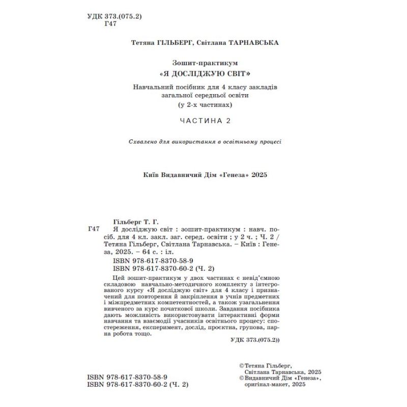 НУШ-2 Зошит-практикум Генеза Я досліджую світ 4 клас Частина 2 Гільберг (2025 рік) видавництва Генеза можна купити в інтернет-магазині Книгован зі знижкою або з безкоштовною доставкою по Україні.
